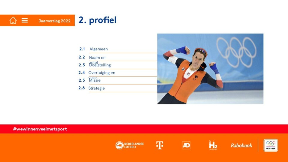 Sport en sportief bewegen dragen bij aan de vitaliteit, gezondheid en sociale ontwikkeling van ieder individu en daarmee aan een gelukkig, vitaal en inclusief Nederland.